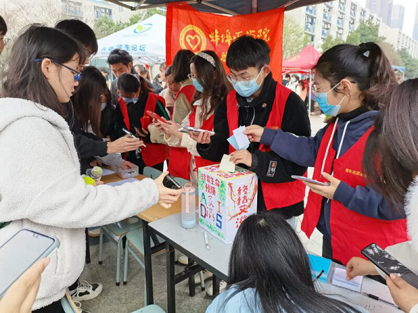 青年志愿者协会于2022年3月19日在校园内开展以“奋进新征程,爱心防结艾”为主题的预防知识宣传活动。