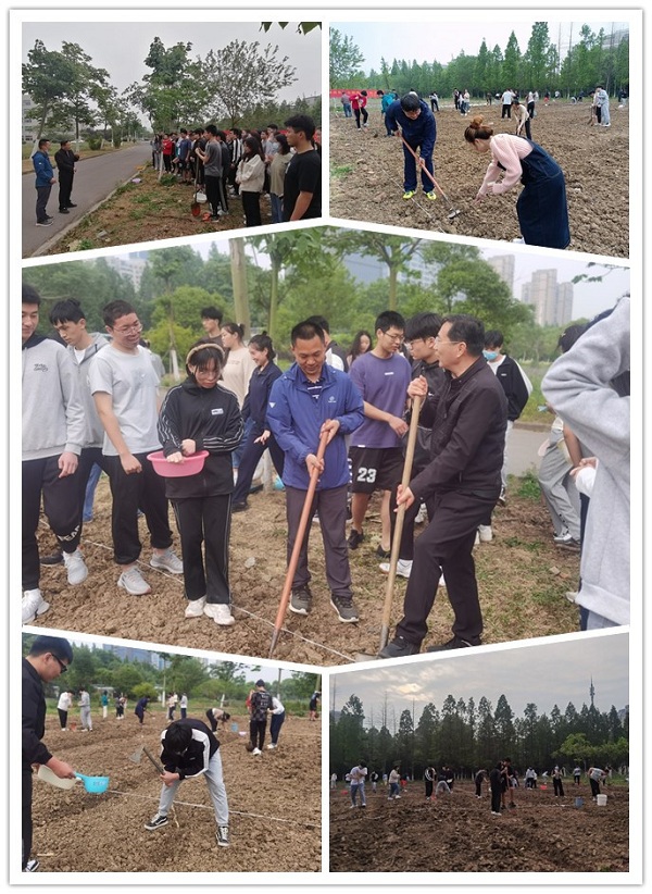 全体教师及学生代表一起参加劳动实践活动。